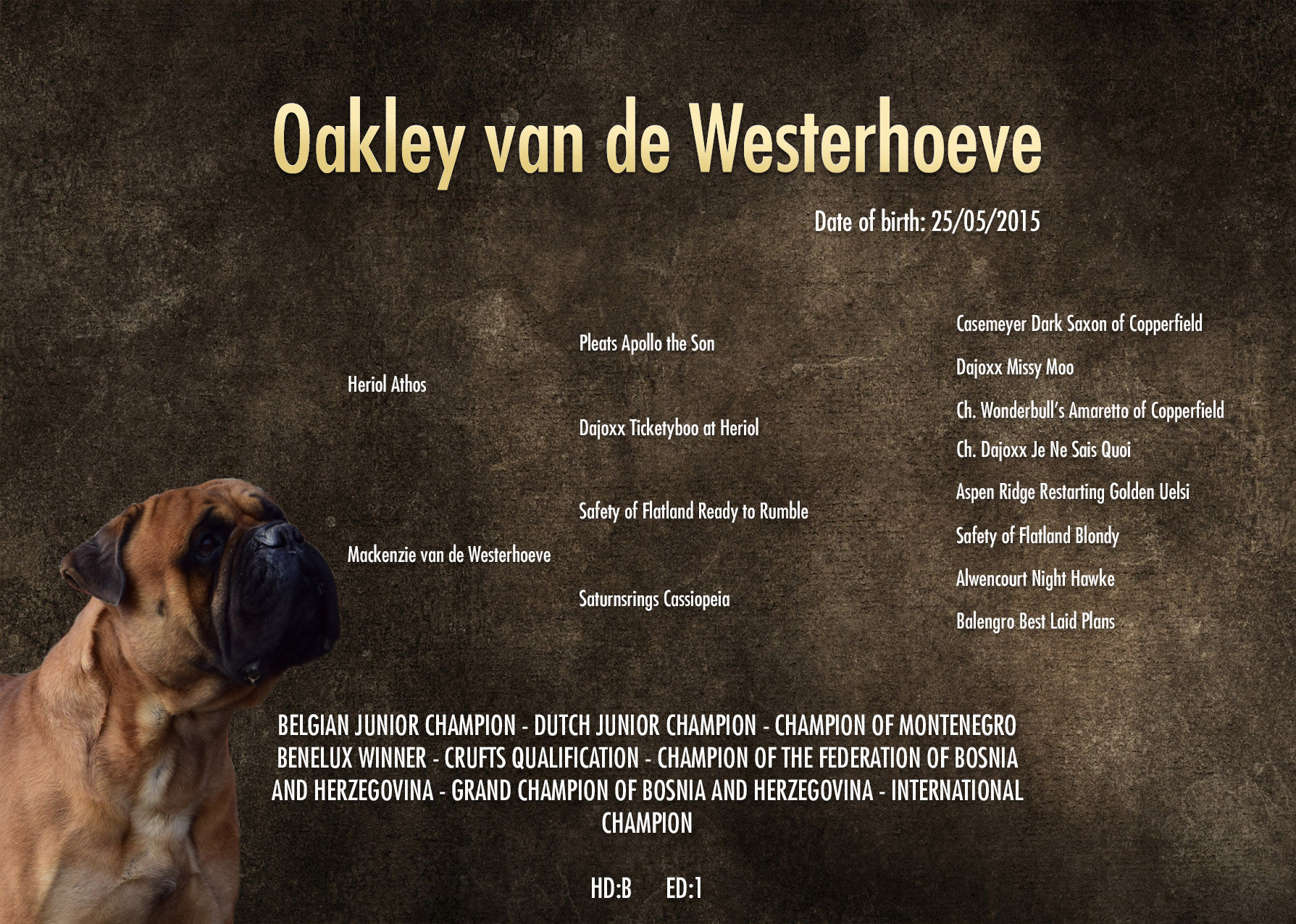 Belgian Junior Champion & Dutch Junior Champion & Champion of Montenegro
